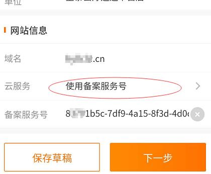 在手機端上備案是在域名下的“云服務”選項里,找到“使用備案服務號”,之后在下方填寫備案服務號,即可