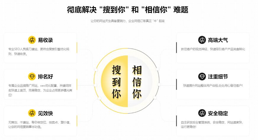 讓網(wǎng)站具有營(yíng)銷力,這是永易搜科技這幾年一直在做的事情。我們做SEO的目的是讓客戶的網(wǎng)站排名能提升,做網(wǎng)站的目的是讓網(wǎng)站更利于SEO,而且這個(gè)網(wǎng)站更利于SEO。