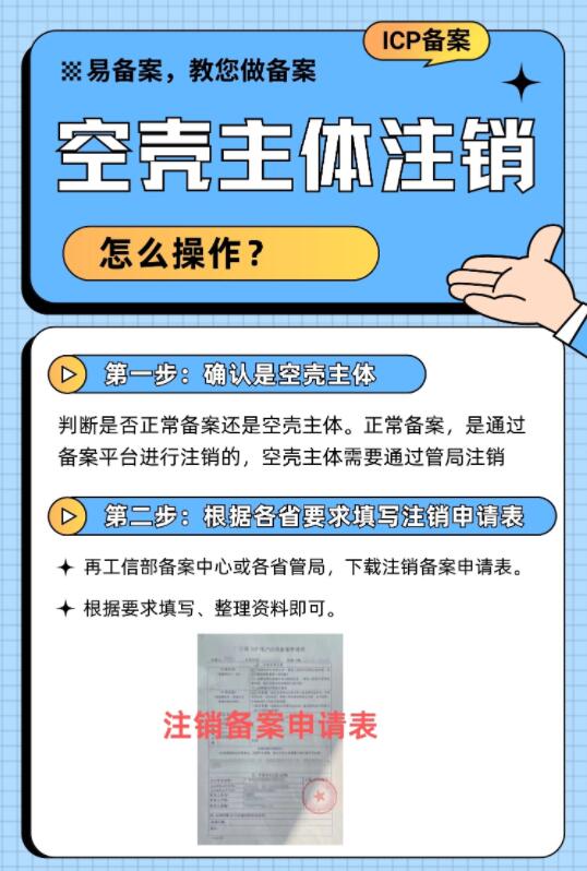 網(wǎng)站ICP備案中,牽涉到一項比較難的操作:空殼主體注銷,很多人不知道怎么辦理。如果你的主體(企業(yè)或個人)被變成空殼主體,那就會耽誤后邊的備案進程,必須先注銷再申請新的ICP備案。
